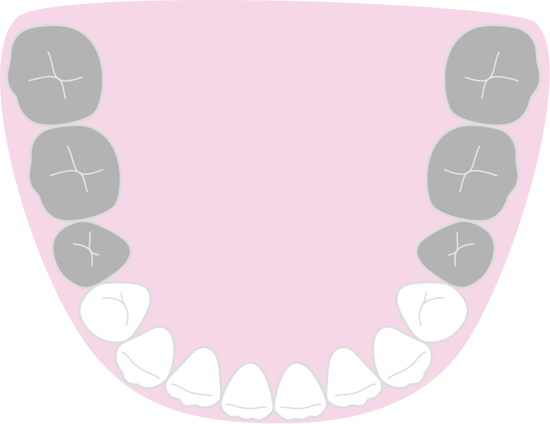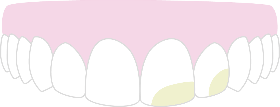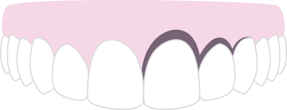 - 三角形の隙間が、中切歯から犬歯へ向けて、大きさと深さが自然に大きくなっている。
