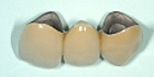中は金51%、パラ27%、銀18%の貴金属の合金を使用します。 金属の上に陶器を焼き付けてあります。 保険の前装冠と比べて、何年しても歯の色の変色はありません。色はオーダーメイドで作ります。 歯ブラシによるすり減りがありません。